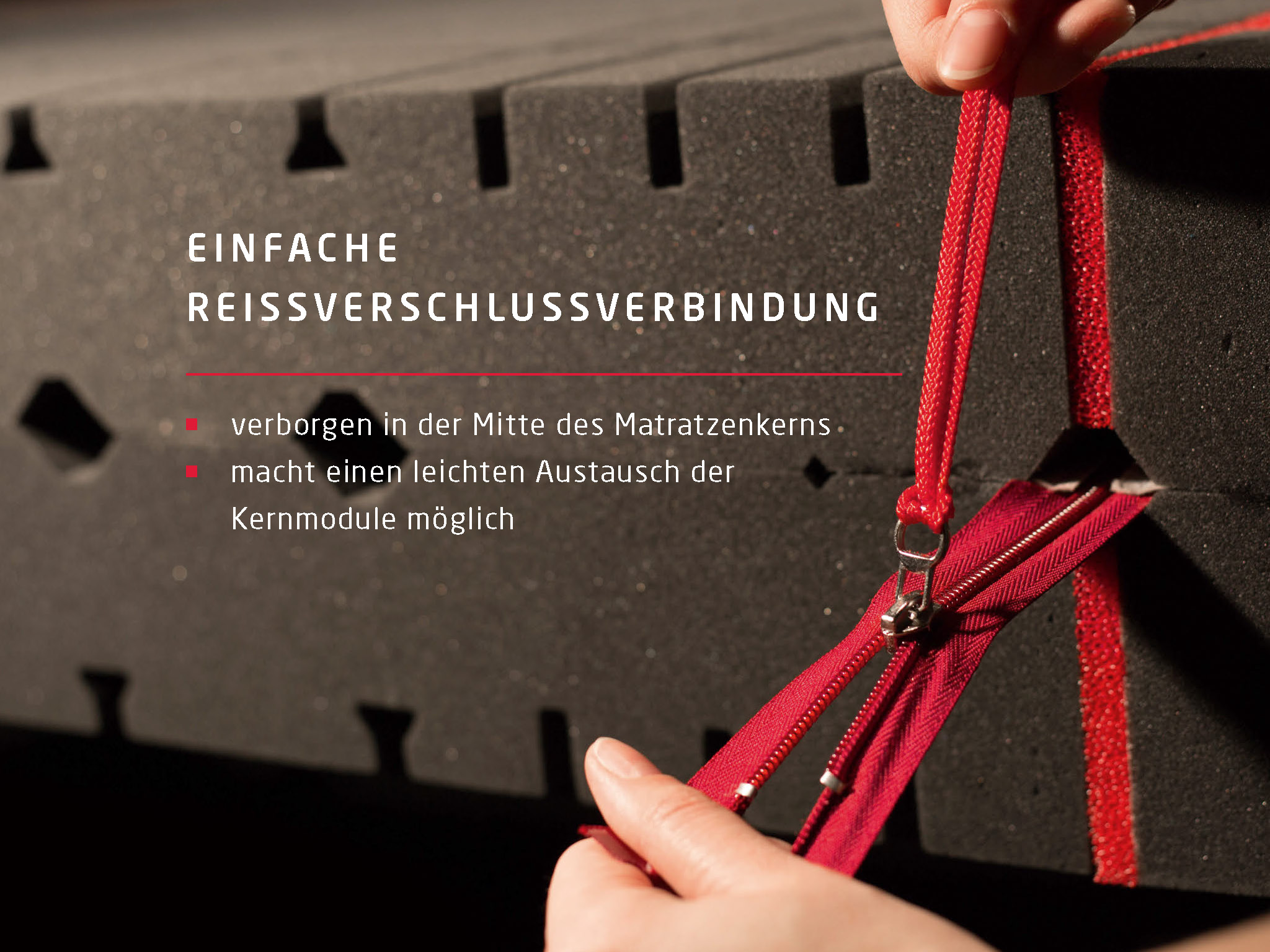 3 Module – für eine Körperzonenstützung, die exakt an dich angepasst ist. Einfache Reißverschlussverbindung – verborgen in der Mitte des Kerns.