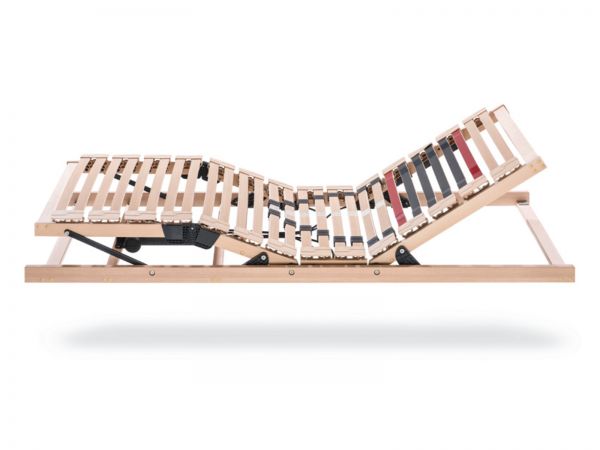 Massive Qualität mit Sondervorteil: Die Schulterzone ist individuell regulierbar.Außenrahmen• Buchenschichtholz in Buchedekor, folienummantelt• sehr stabil und verzugsfrei• 60 mm hoch, 25 mm starkFederholz-Leisten aus Buchenholz• 22 Federschichtholzleisten in Buchedekor, 5-fach verleimt• 6 Wendeleisten in rot/anthrazit, 7-fach verleimt• 2 Abschlussleisten, 68 mm breit• 2-Stufen-Schulterzone: 6 Wendeleisten mit 6 Schultermechaniken zur besseren Absenkung• Lordose-/Beckenzone: 4 Doppelleistenpaare mit innovativem Transparentband gegen unabsichtliches Verrutschen verbunden, mit 16 arretierbaren MZV-Schiebern zur HärteregulierungKappen• 28 überstehende Kappen aus langlebigem High-Tech-MaterialMaße• Rahmenhöhe ca. 100 mmWichtige Hinweise zum Flachmotorrahmen Smart• ultra flacher Motorrahmen. Problemlöser für Bettkasten und Schubauszüge• motorische Antriebe sind im Fußbereich integriert. Zusätzliche Stabilisierung durch Metallstreben• gleichmäßiger Antrieb über beidseitigen Seilzug